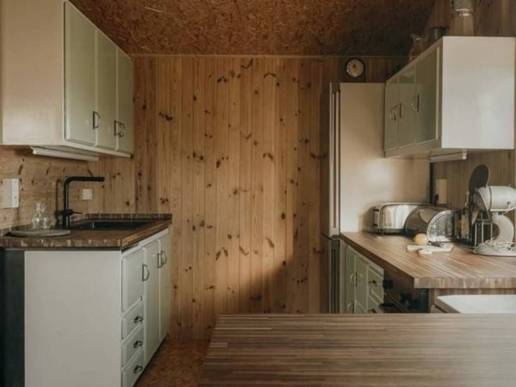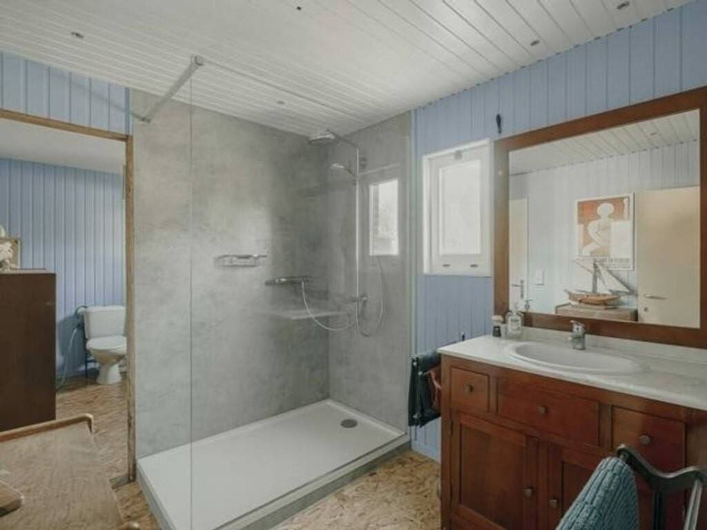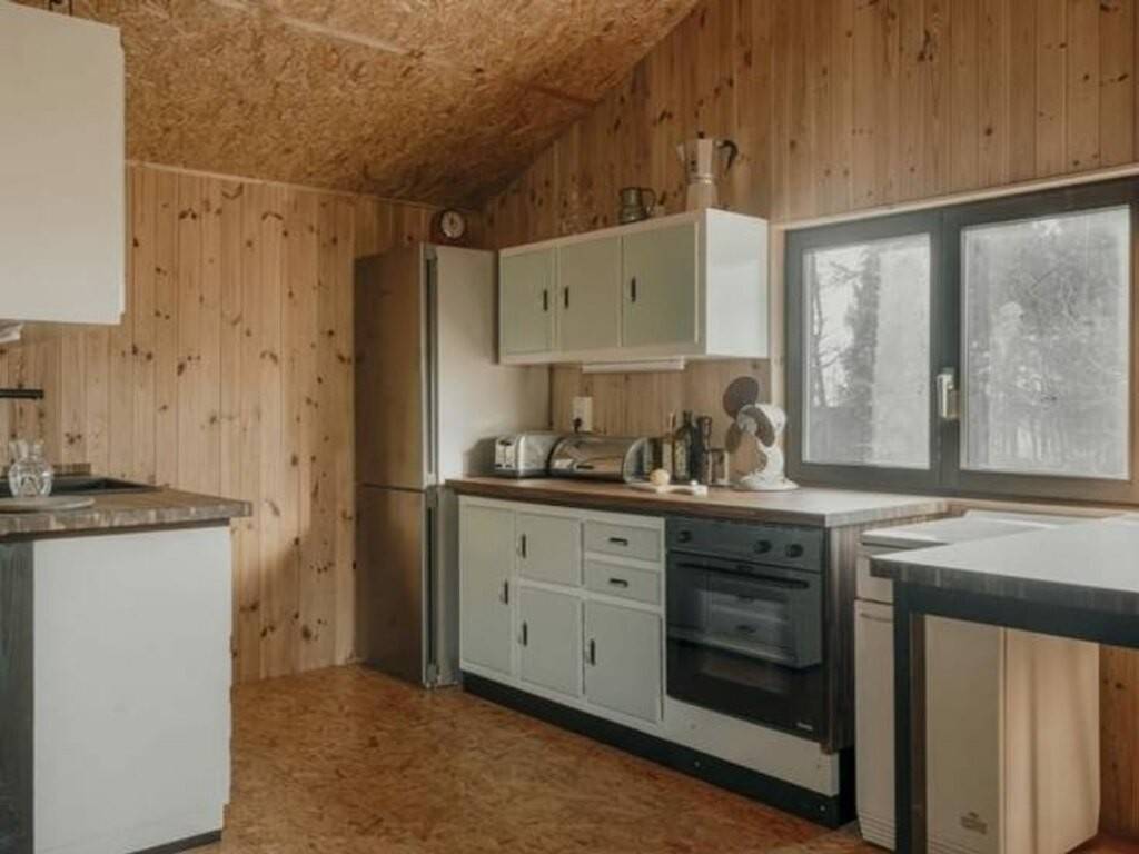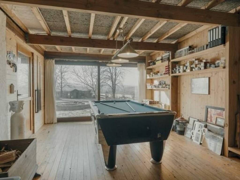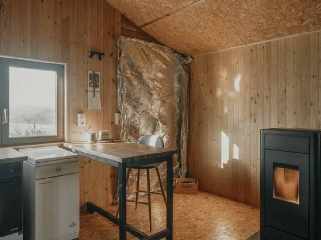 Entrant par son hall d'entrée, vous découvrirez un lumineux séjour grâce à sa large baie vitrée et son poêle à bois, un espace salle-à-manger avec cuisine ouverte équipée orné de son poêle à pellets, une salle-de-douche entièrement rénovée en 2023 avec douche, évier et un espace buanderie avec WC. L'aile gauche du chalet peut être transformée selon vos désirs en 2 voire 3 chambres.