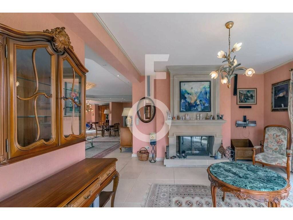 This level features a vast living room, dining area, and sitting room, all bathed in natural light and offering direct access to a covered terrace and the garden.