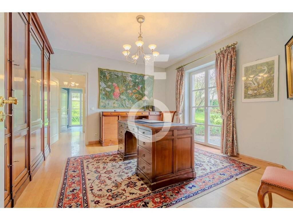 Real Estate Feltes is pleased to present for sale an exceptional architect-designed house offering approximately 760 m² of living space. Nestled in the charming village of Useldange, this splendid property sits on a generous 39.85-are plot, providing a privileged living environment—a true haven of peace surrounded by beautifully landscaped grounds and complete privacy.