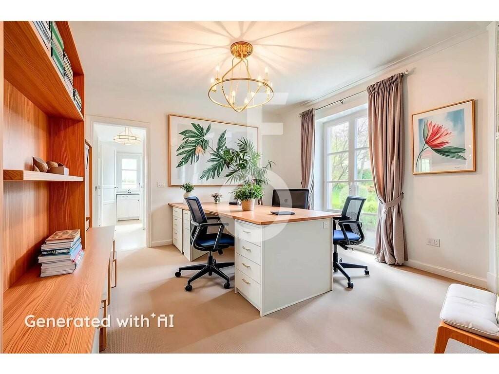 Additionally, there is a study ideal for working in a tranquil setting, located near the first master suite, which includes a dressing room and an en suite bathroom.