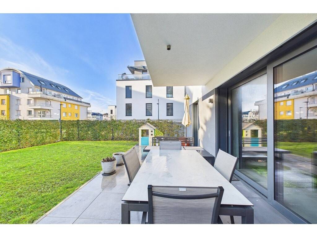 SPLENDIDE APPARTEMENT EN RDCH DE 2 CHAMBRES AVEC JARDIN DE 75 M², TERRASSE DE 35 M², 1 PARKING, CLASSE ENERGÉTIQUE A-A, CHAUFFAGE URBAIN