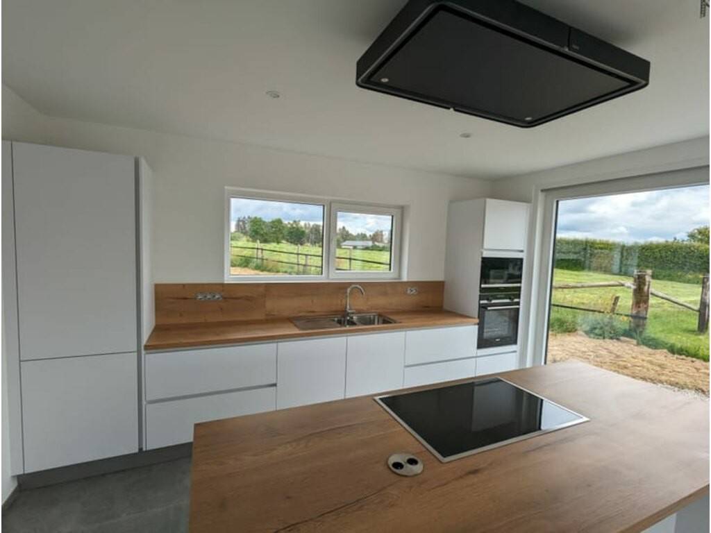 Dès l’entrée, vous serez séduit par un living lumineux ouvert sur la salle à manger et la cuisine équipée. Cette dernière, pensée pour les amateurs de convivialité, dispose d’un superbe ilot central et d’un équipement complet : électroménagers Siemens, lave-vaisselle, four, micro-ondes, frigo et hotte.