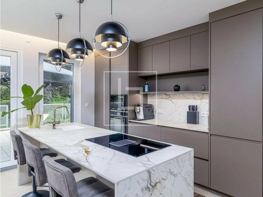 - une entrée avec placards intégrés, - un vaste salon-séjour ouvert sur une cuisine haut de gamme équipée d'électroménager SMEG, - De grandes baies vitrées donnant accès direct à la terrasse