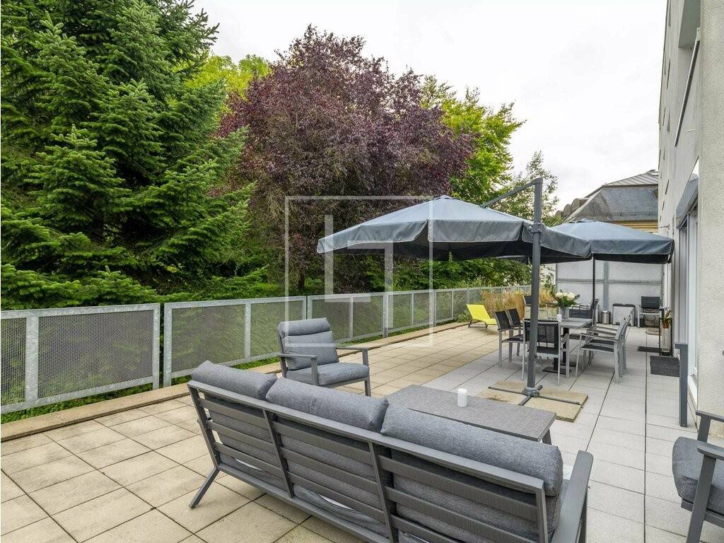 Terrasse d'exception : 150 m², double orientation sud et est, baignée de lumière avec un accès direct au parc arboré.