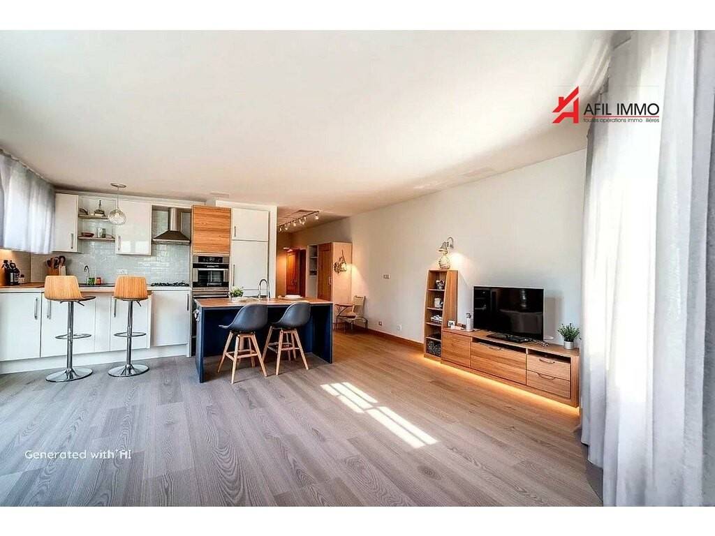 Il offre un beau salon ouvert sur la salle à manger et la cuisine équipée, le tout avec une sortie sur un beau balcon/terrasse bien ensoleillé.