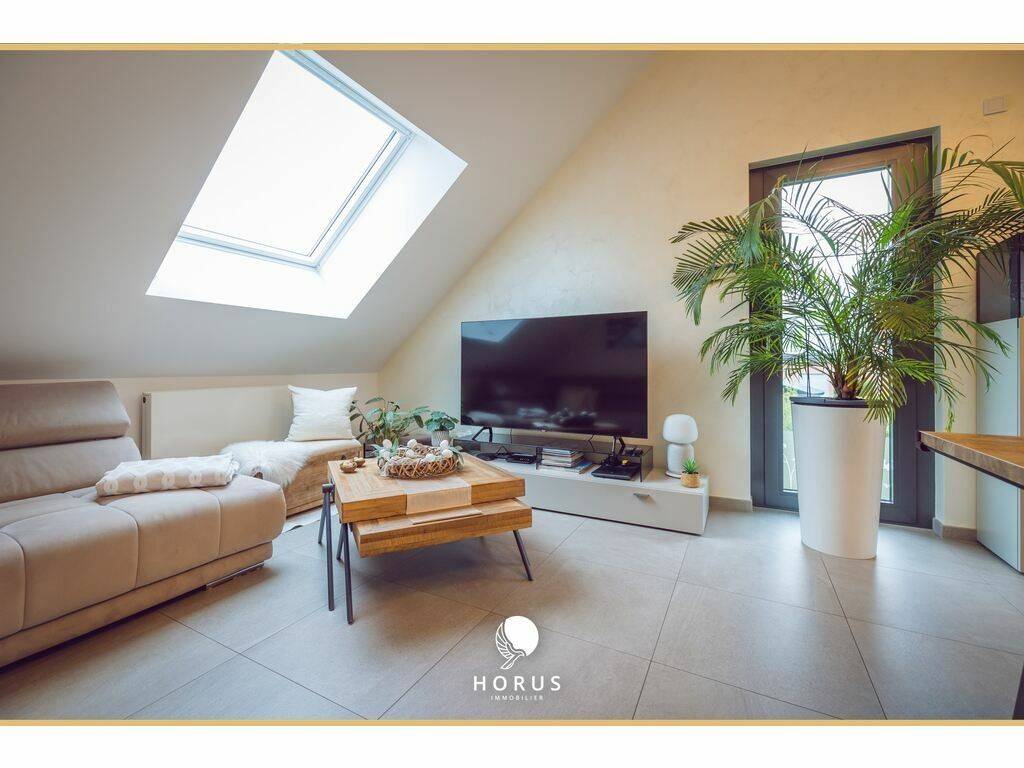 HORUS Immobilier offers for sale this exclusive 2-bedroom apartment measuring approximately 98m², located on the 2nd floor of a 6-unit building built in 2021 in Soleuvre, in the commune of Sanem.