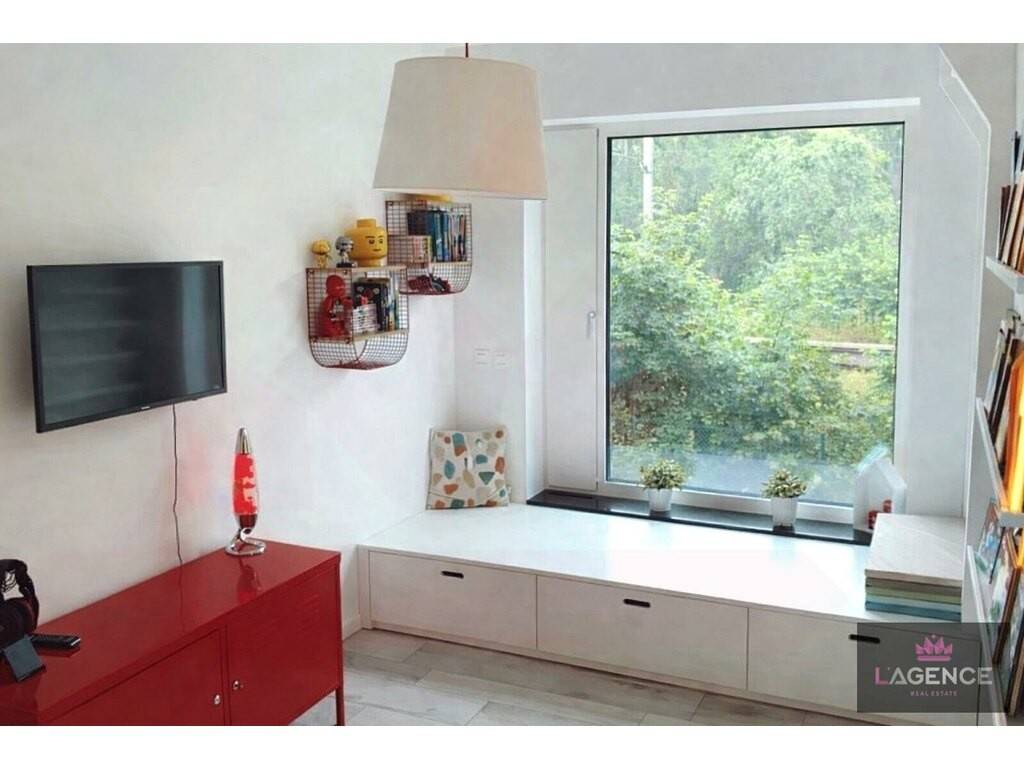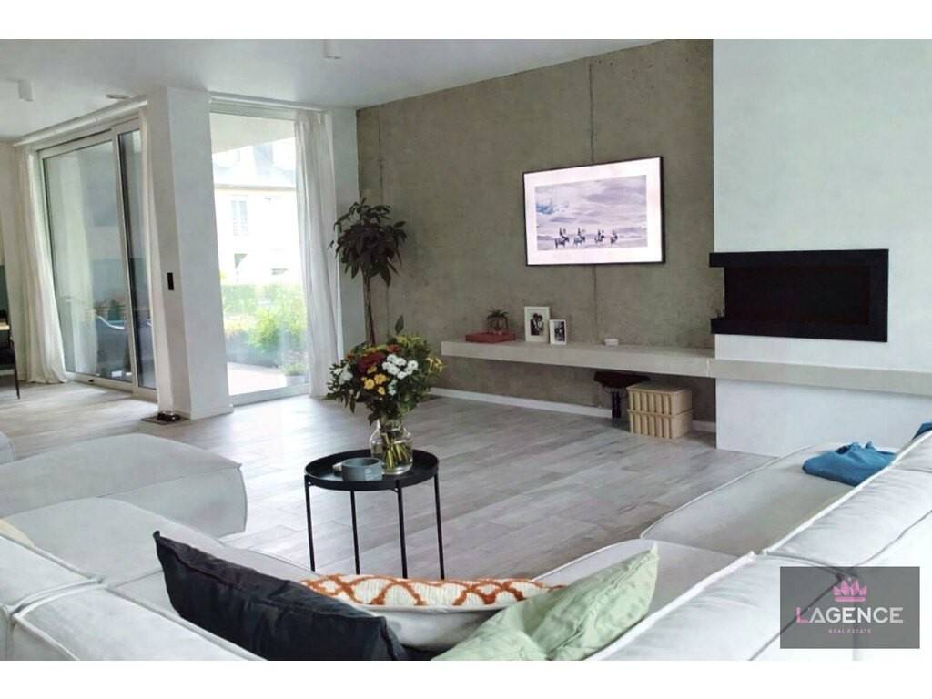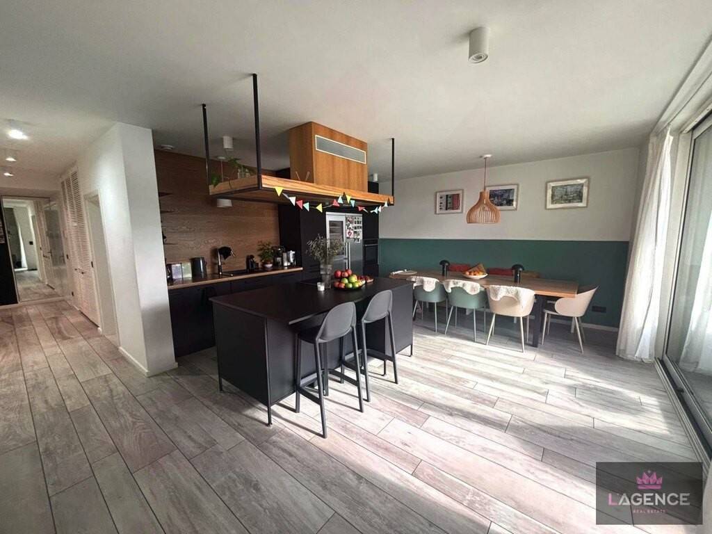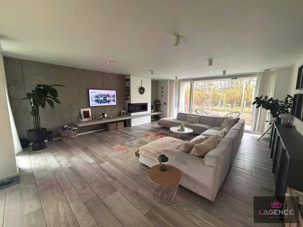 Appartement +/- 130m2 comprenant hall d'entrée avec placards intégrés, living avec feu ouvert, cuisine équipée ouverte sur living, deux terrasses, 3 chambres à coucher, une salle de bain et une salle de douche.