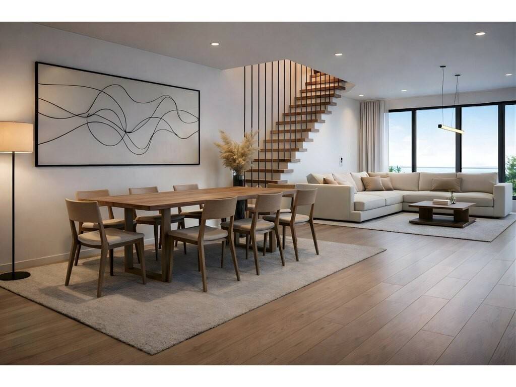 Caractéristiques : Ce moderne triplex de 146 m² dispose des trois chambres, trois salles de bain, Un Wc séparé, une cuisine, un salon, un jardin privatif et une terrasse pour chaque pièce de vie.