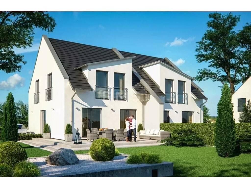 Modern, timber-framed houses, timeless shapes that never get boring The Catania semi-detached house presents an unmistakable interplay of modern forms, such as the parapet gables extending over the roof surface and the pent roofs arranged in opposite directions. The respective building end walls of the two halves of the house are also extended beyond the façade and serve as privacy screens in both the entrance and terrace areas.