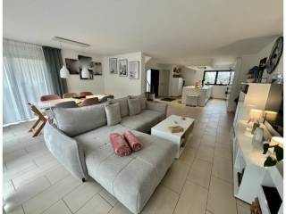 Entrance hall, very bright Living room (approx. 44.6 m2) with access to Terrace (approx. 20 m2) with electric awning (Value 30,000 Euros) and Garden (approx. 50 m2 / South facing), open equipped kitchen (Itadesign / 2012 / Value 30,000 Euros), separate WC (approx. 4.52 m2)