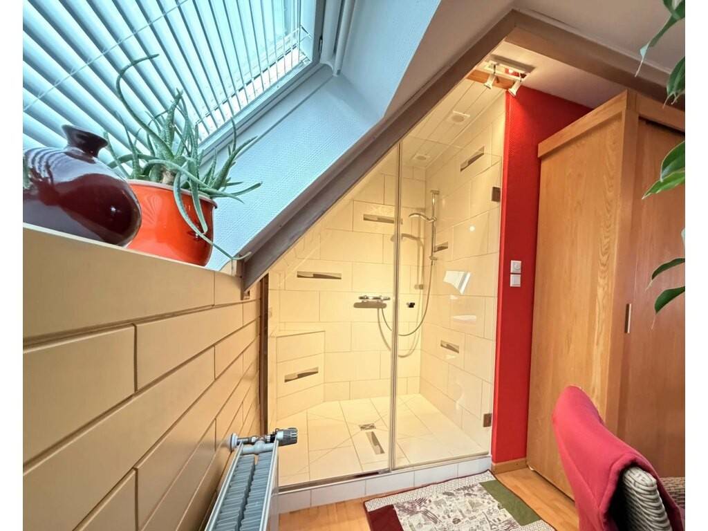 The apartment is composed as follows: on 2nd floor: - entrance hall (7.7m2), with built-in cupboard, - separate WC (1.2m2) - separate fitted kitchen (8.11m2) with access to a balcony (4.5m2) - spacious living/dining room (31.8m2) with access to balcony - two bedrooms (12 and 13.80m2) - a nice shower room (4.5m2) on the 3rd floor: - bedroom/room with 32.5m2 of living space - separate WC - individual shower - sauna - balcony of approx. 10.5m2 - attic space of approx. 23m2