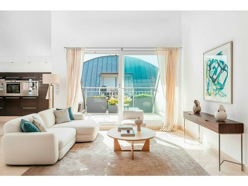 Dès l'entrée, le ton est donné : volumes généreux, luminosité abondante et circulation fluide des espaces. L'espace de vie principal s'articule autour d'un vaste salon-séjour avec cuisine ouverte entièrement équipée, parfaitement intégrée et pensée pour conjuguer esthétique et fonctionnalité. La belle hauteur sous plafond et les larges ouvertures vitrées renforcent la sensation d'espace et créent une atmosphère à la fois contemporaine et chaleureuse. Un coin bureau vient naturellement compléter cet ensemble, idéal pour le télétravail ou un espace lecture.