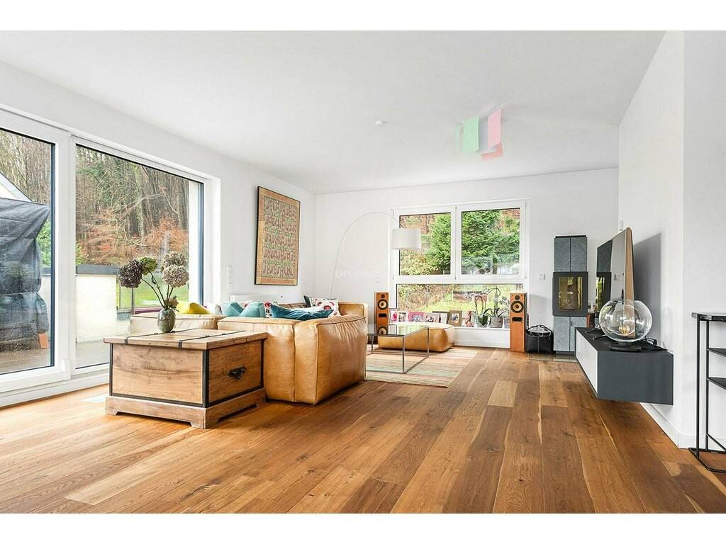 A 1.8-acre private garden on the edge of the forest, a large double garage and a spacious cellar complete the apartment's offer. A real favorite!