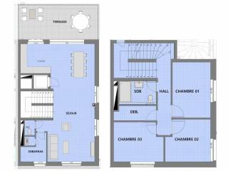 The DUPLEX B.02 is located on the two upper levels and offers an area of ±130.52m² as well as a large terrace. It is composed as follows: