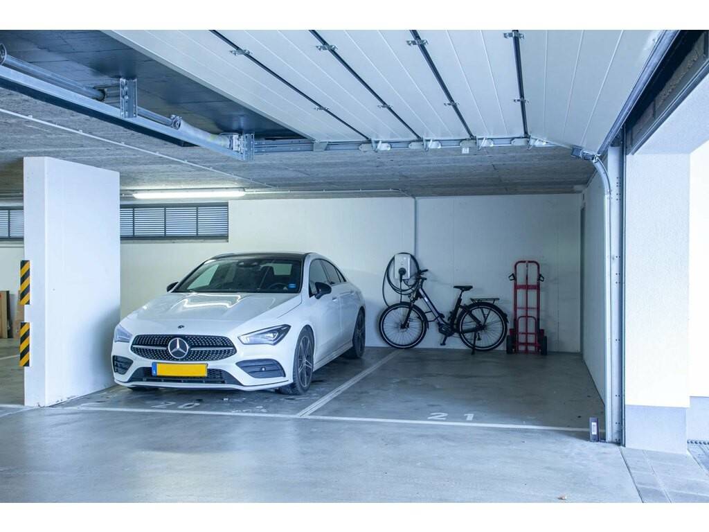 The high-end fitted kitchen with quartz worktop and central island is included in the purchase price. Two indoor parking spaces are also included, as well as a private electric vehicle charging station installed at the parking space.