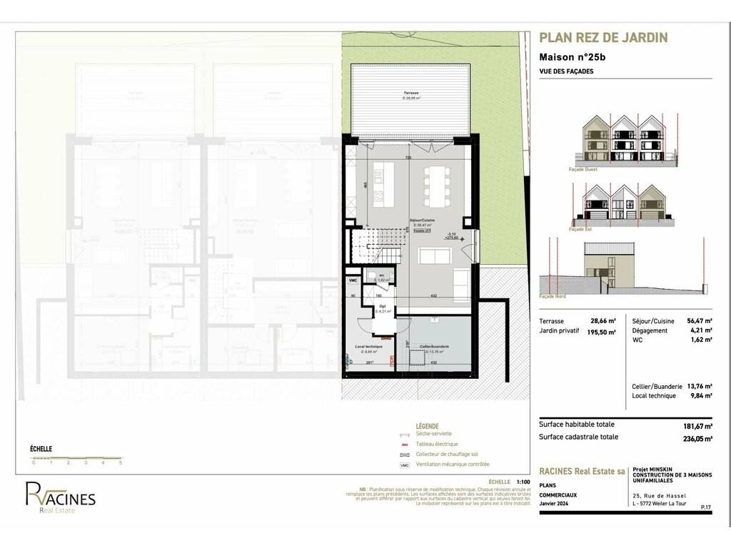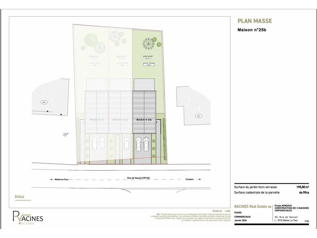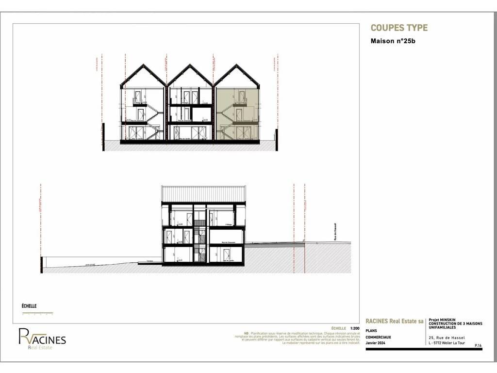 Last house available (lot 3; house no. 25 B), with a total surface area of 280 m² (230 m² living space) on a 4.59 ares plot, distributed over 3 levels as follows: