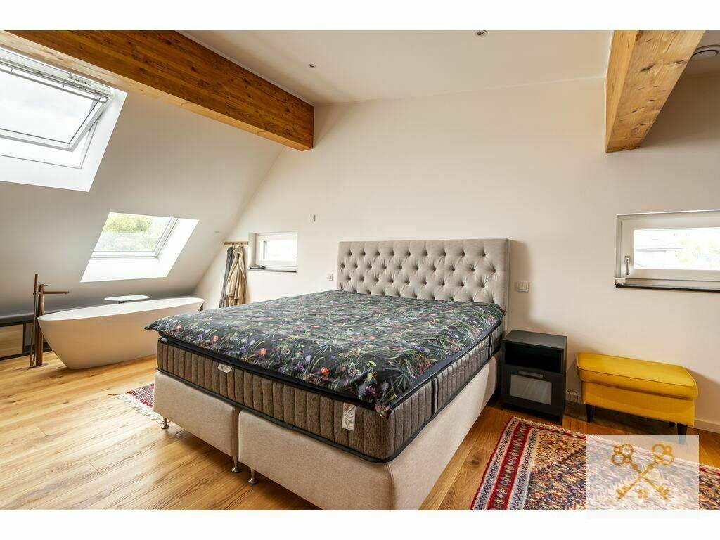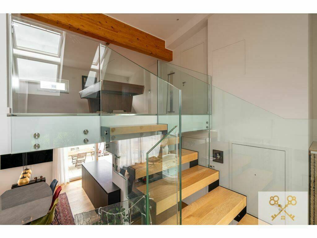 The apartment is crowned by an expertly converted 77 m² attic level, accessible directly from the interior. Representing a premium value of 200,000 €, this level transforms the penthouse into a true mansion in the sky. Featuring high-quality parquet flooring and underfloor heating throughout, it includes:
