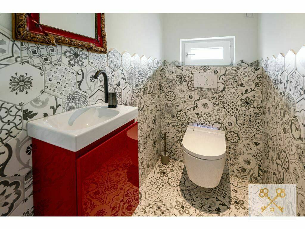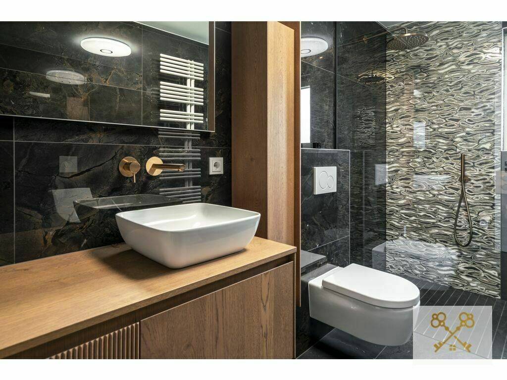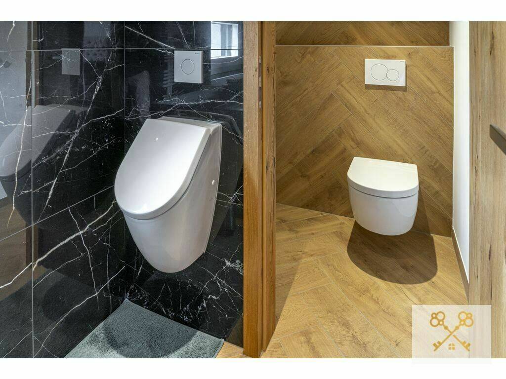 Luxury Bathroom: Equipped with a walk-in shower, urinal, and a separate guest toilet (WC-separé).