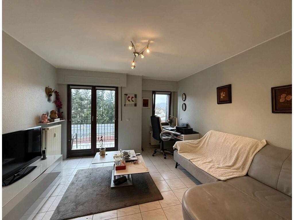 L'appartement se situe à quelques pas du centre-ville de Dudelange et se compose comme suit : un hall d'entrée avec placards encastrés, un WC séparé, une salle de douche avec douche et deux lavabos, une chambre à coucher, une cuisine équipée ouverte sur le séjour avec accès au balcon.
