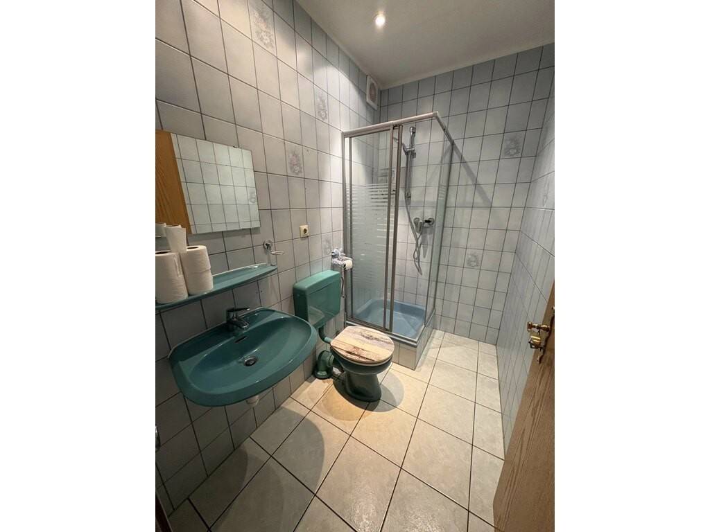 - Au rez-de-chaussée : hall d’entrée, cuisine équipée séparée, chambre à coucher, salle de douche avec WC, et terrasse de 21m².