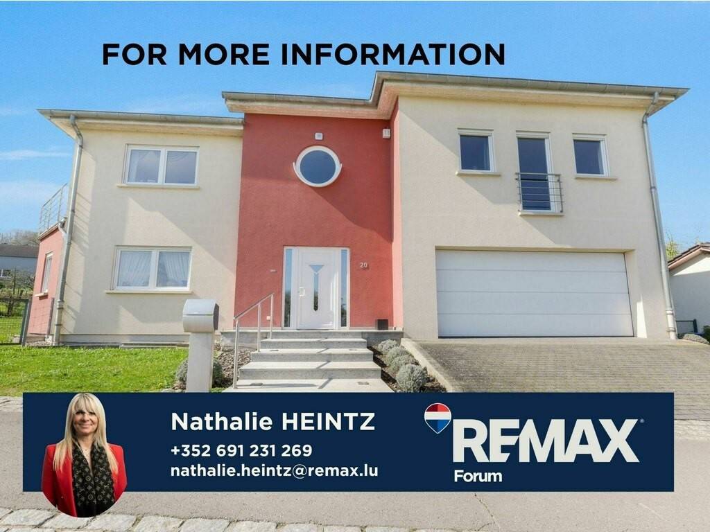La propriété est entourée d'un agréable jardin paysager ainsi que d'une terrasse avec pergola, idéale pour profiter pleinement des beaux jours dans un cadre privilégié. Située dans le charmant village de Remerschen, cette maison bénéficie d'un emplacement très recherché au cœur des vignobles luxembourgeois et à proximité immédiate de Schengen, offrant un cadre de vie exceptionnel entre nature, tranquillité et accessibilité.