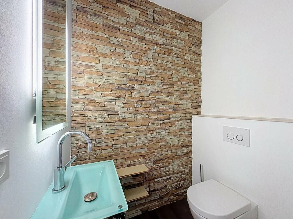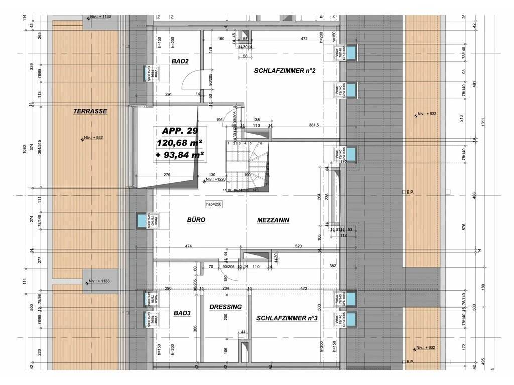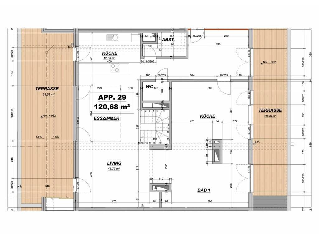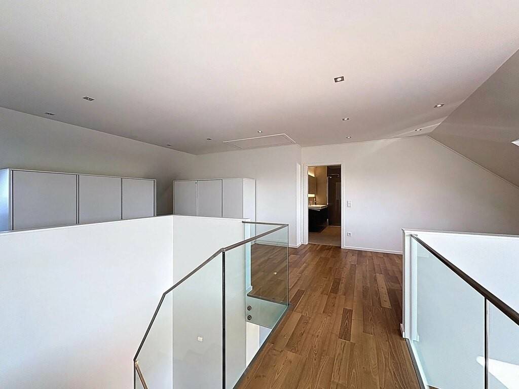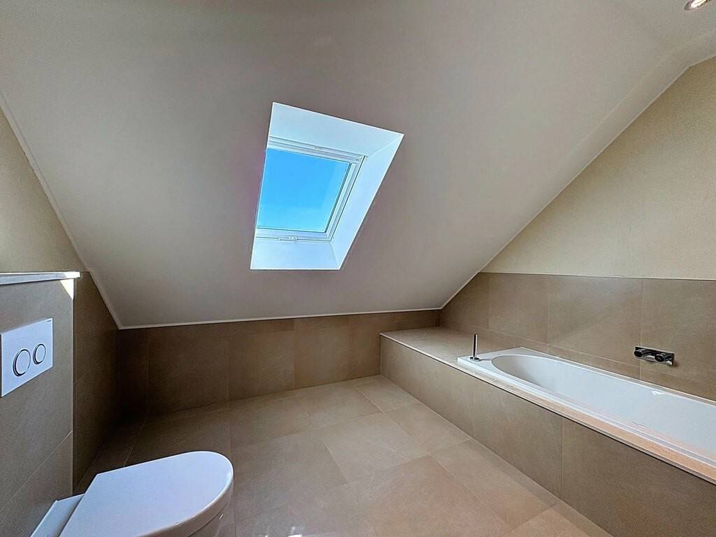 Au premier niveau, vous découvrez un grand hall d’entrée accueillant. Celui-ci mène à une cuisine entièrement équipée avec accès direct à une première terrasse de 28,96 m². Dans le prolongement de la cuisine se trouve la spacieuse et lumineuse pièce de vie, qui donne accès à une seconde terrasse de 38,58 m², idéale pour profiter des beaux jours. Ce niveau comprend également un WC séparé ainsi qu’un espace de rangement.