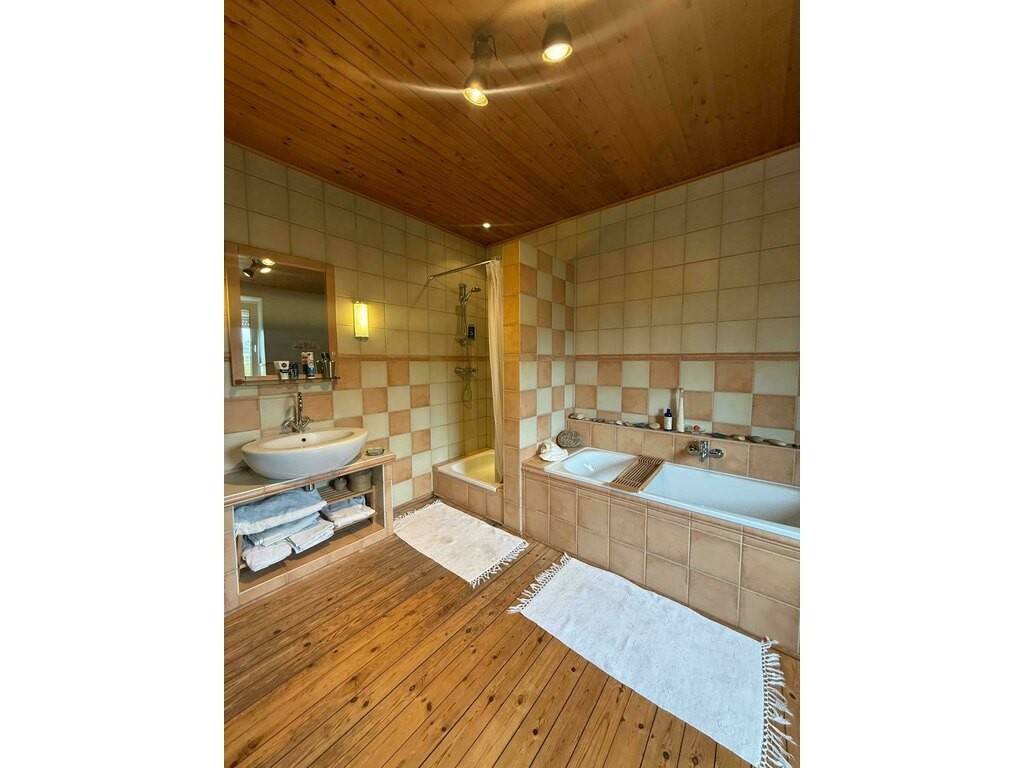 Au premier étage, se trouve une grande suite parentale ainsi qu'une spacieuse salle de douche séparée, rénovée en 2000.