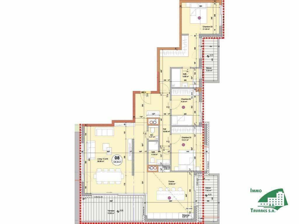 APP. 08: This apartment is located in the residence DAUPHIN, which will be built on a plot of 8.03 ares. The residence consists of 8 apartments, ranging from 67 m² to 129 m².