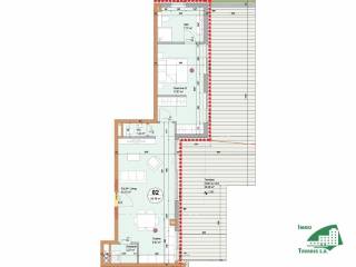 De plus, l'appartement dispose une cave et un emplacement intérieur au sous-sol -1 et une terrasse de 56.56 m² au rez-de-chaussée.