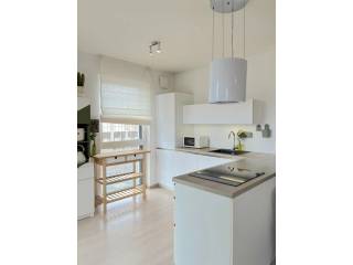 1 large entrance hall 1 living room open to the equipped kitchen with access to a balcony 1 bedroom 1 bathroom with toilet 1 cellar opposite the parking space 1 indoor parking space There is a communal laundry room in the basement or possibility within the apartment.