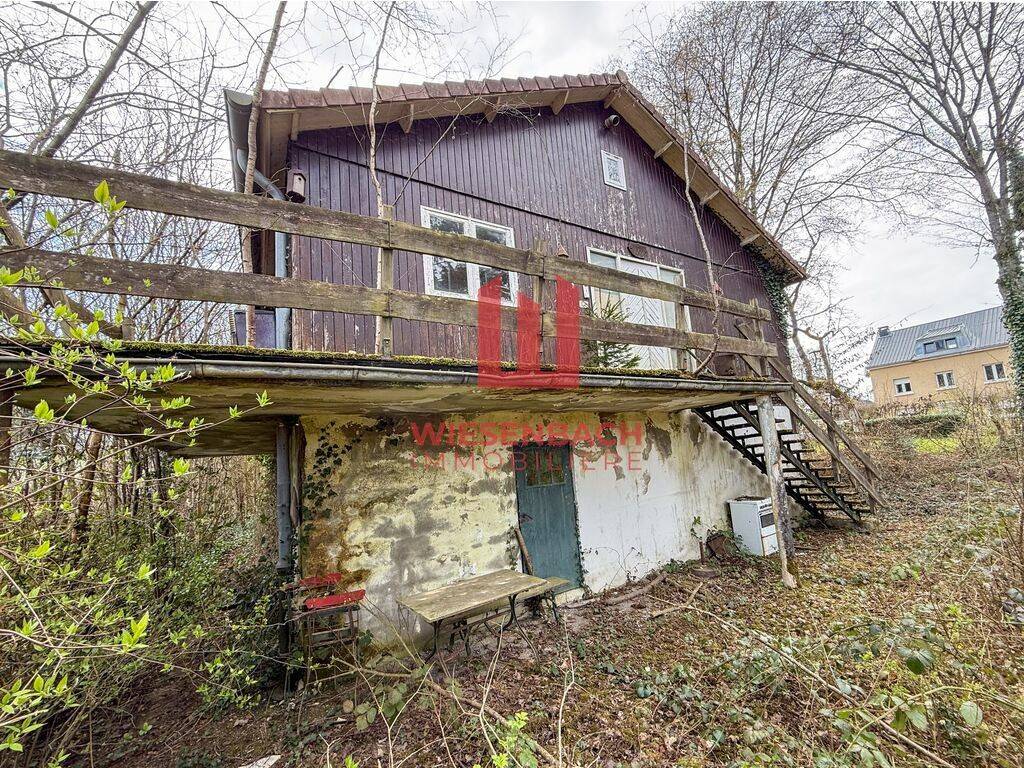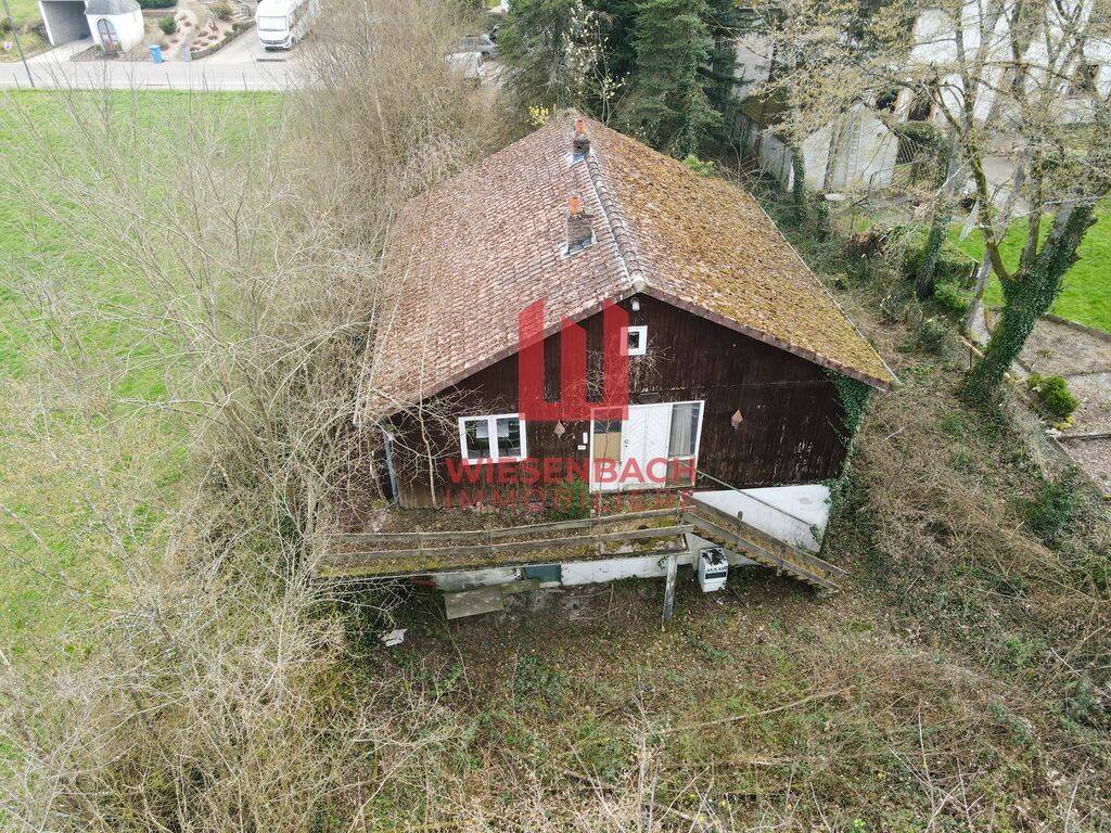 Comme le montrent les photos, le terrain est actuellement occupé par un chalet de deux étages qui doit être démoli, et la végétation y est très dense.