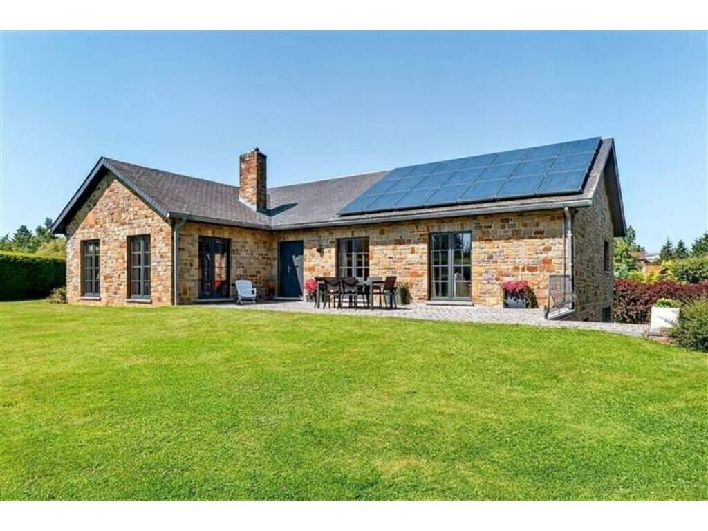 Dans le joli village d'Hamois: belle villa de "Plain-pied" avec une surface habitable de 180 m². Ce spacieux plain-pied en pierre du pays propose un grand espace de vie convivial, 4 chambres confortables, une