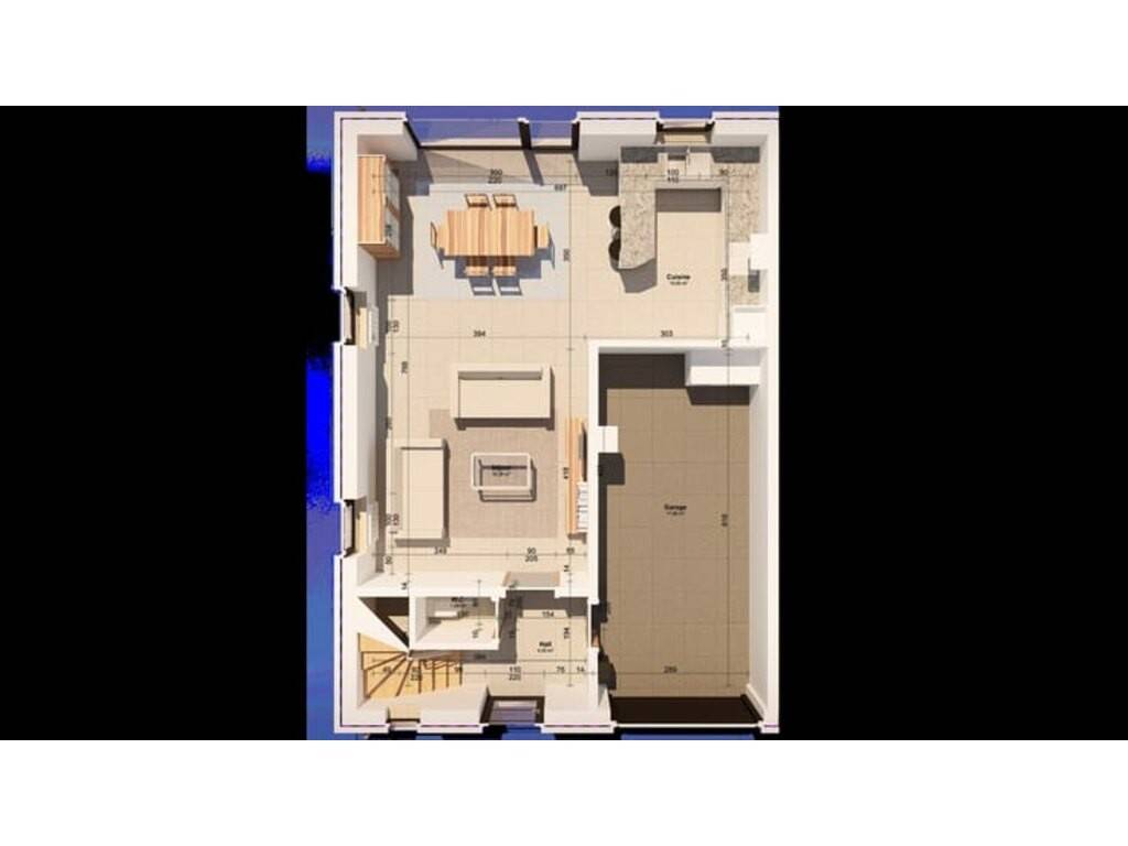 Au rez-de-chaussée : • Hall d’entrée avec WC indépendant • Séjour lumineux ouvert sur la cuisine • Cuisine • Garage avec buanderie • Jardin • Terrasse