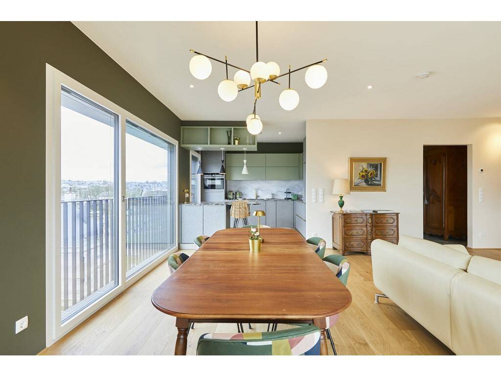 Warm and bright, the apartment is just a few minutes' drive from Luxembourg City and close to the amenities offered by the emerging neighborhood, such as a supermarket, pharmacy, schools, and nurseries, etc.