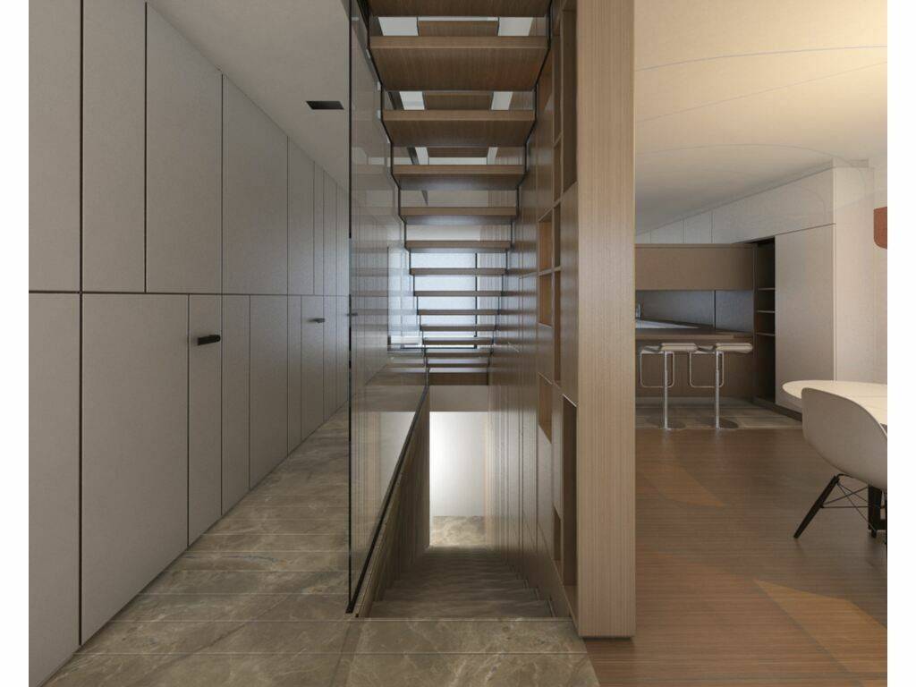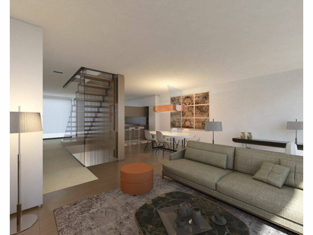 As portas interiores dos pisos serão de altura máxima, niveladas. Pavimento de parquet de carvalho com tiras grandes 18cmX180cm.