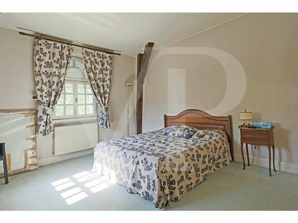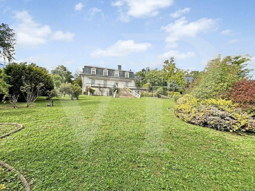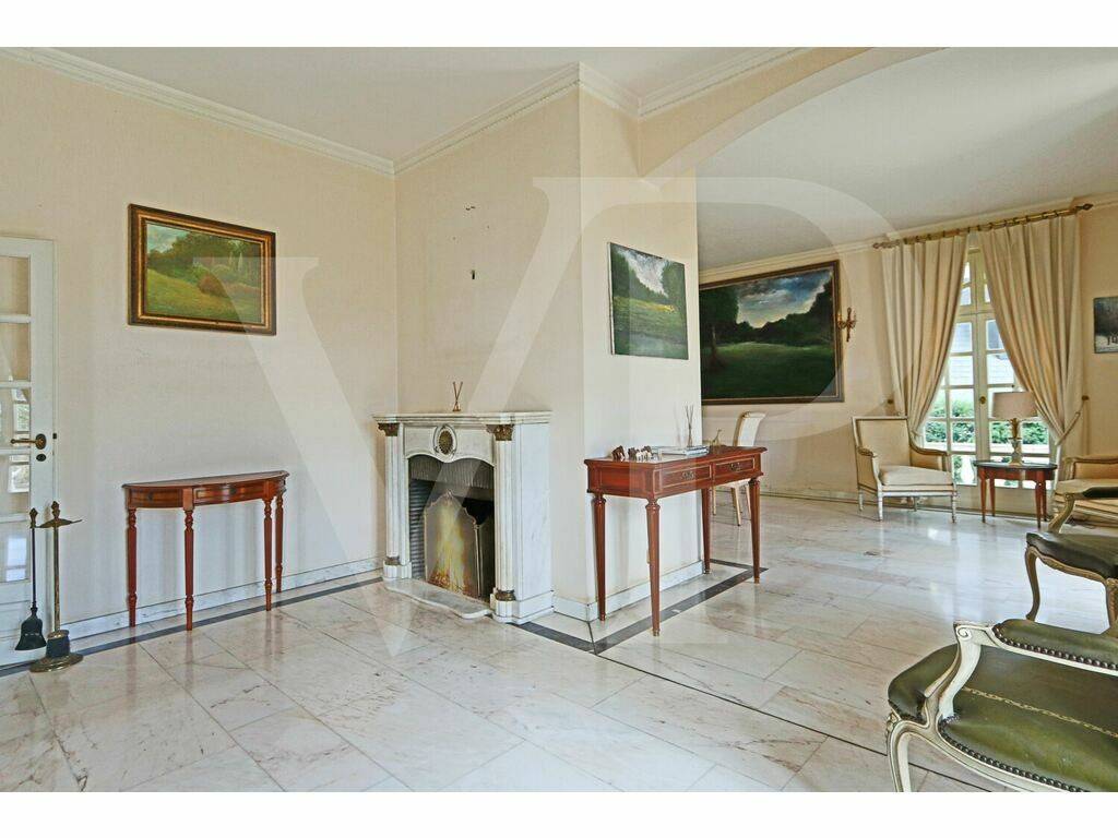 On the ground floor, a large entrance hall leads to the living room, library, cloakroom with toilet, kitchen, and a large bedroom with en-suite bathroom. The spacious living room, with its high ceilings, has a fireplace that creates a warm and welcoming atmosphere, ideal for winter evenings. A large dining room, adjacent to the living room, creates a 63m² living space. Access to the terrace, which offers a view of the garden, is directly from the living room.