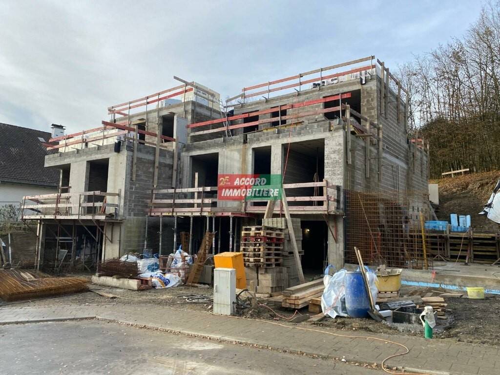 Belle maison unifamiliale jumelé (droite) ainsi que deux autres maison (jumelé et mitoyenne) en future construction, situé à rue des Alliés à Pétange.