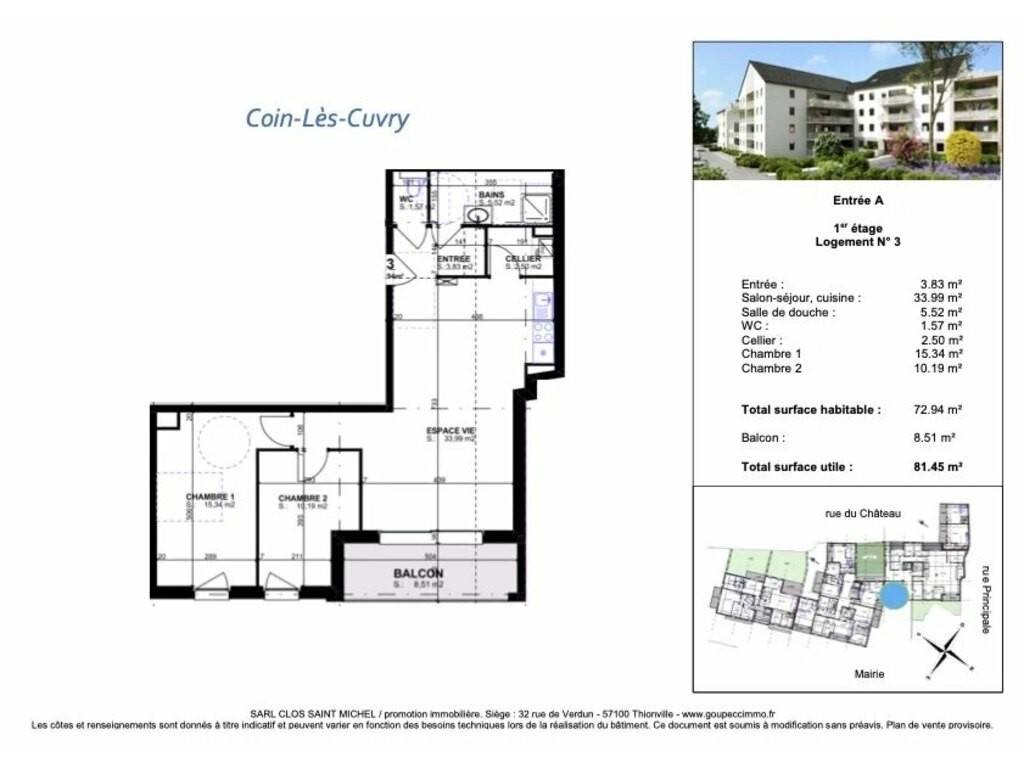 N’hésitez pas et venez découvrir ce nouveau programme neuf en plein cœur du village de Coin-Les-Cuvry. Idéalement situé sur l'Axe Luxembourg - Nancy, ce village bénéficie d'une facilité d'accès aux principaux axes routiers, d'une proximité avec l'aéroport régional et la gare "Lorraine TGV". Le récent développement de zones commerciales comme le Waves à Augny ou encore l'arrivée du géant Amazon à 5 min de la résidence rendent ce projet très attractif.