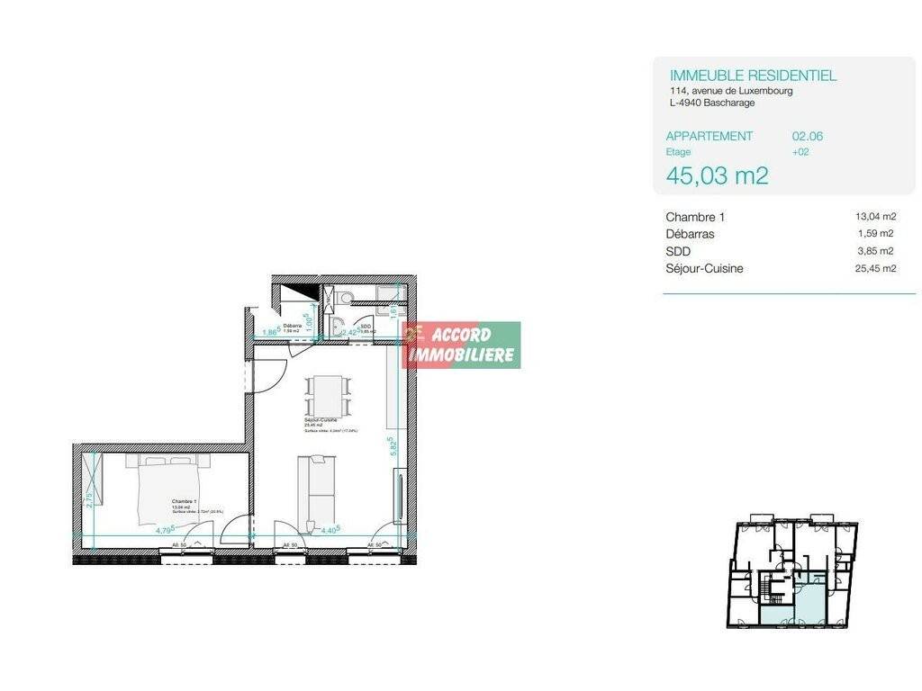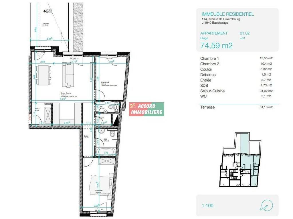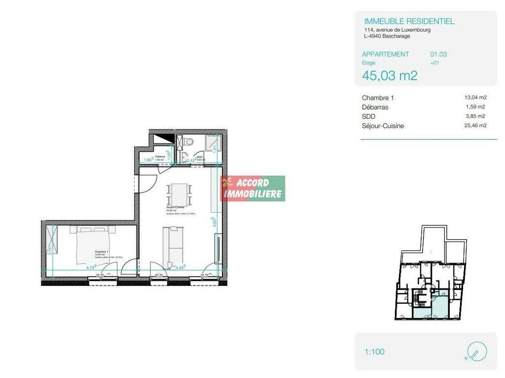 Pour tout renseignements, n'hésitez pas à nous contacter au 26 58 01 75-1 ou à info@accord-immo.lu