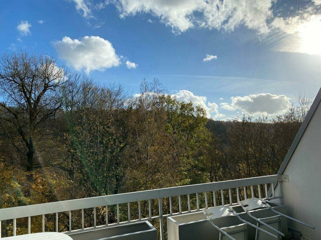 Ce bureau donne sur une terrasse privée, exposée plein sud avec une vue imprenable sur la foret.