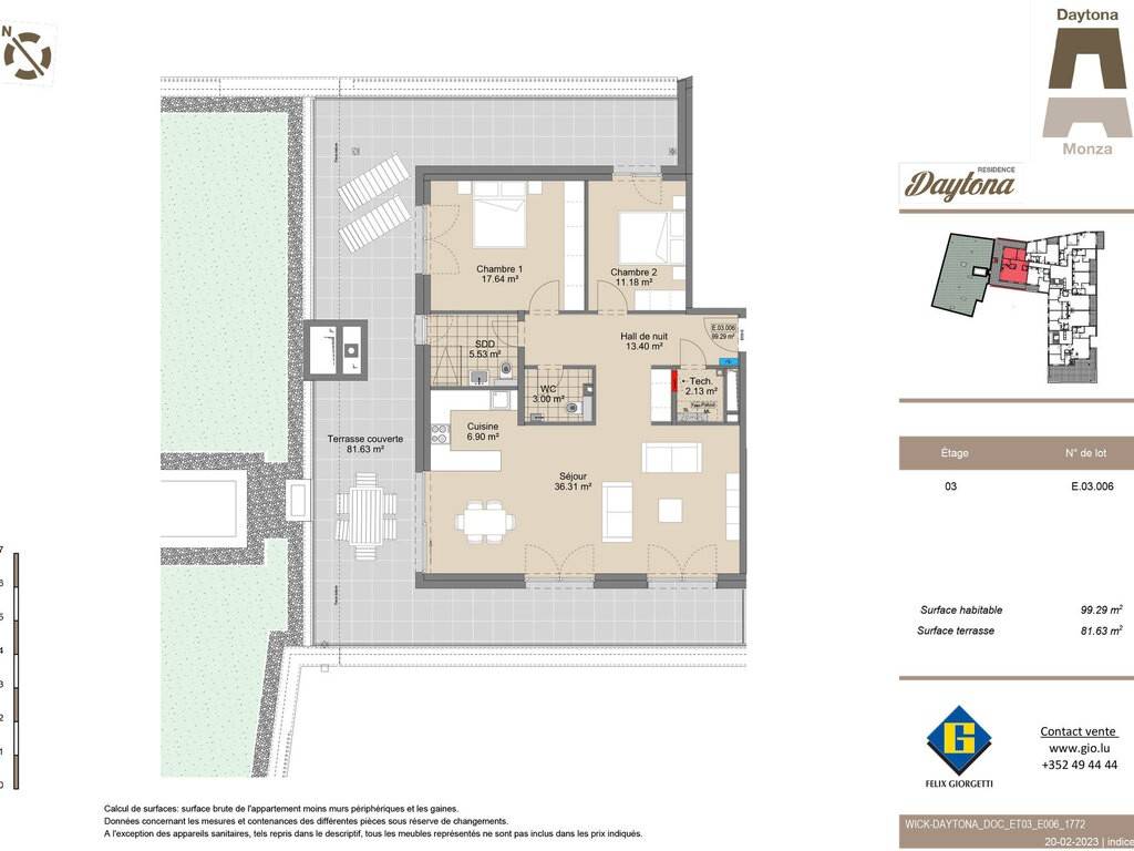 Félix Giorgetti vous propose ce magnifique appartement de 99 m2 de surface habitable sis au 3e étage de la résidence Daytona à Wickrange.