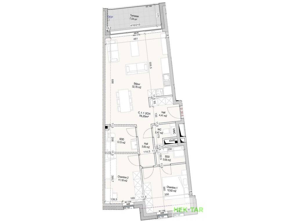 HEKTAR offers you this magnificent apartment (lot C 1.1) with a living area of 78.25 m², ideally located in the heart of the village of Oetrange, just 300 m on foot from the Oetrange train station.