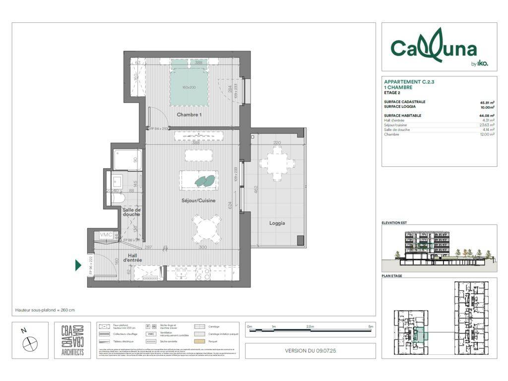 Au sein de la résidence Calluna, IKO REAL ESTATE vous propose cet appartement 1 chambre neuf de 45.81 m² habitables situé au 2ème étage. Il se compose d’un hall d’entrée avec une salle de douche menant à un spacieux séjour avec cuisine ouverte et une chambre. L’espace de vie s’ouvre sur une agréable loggia de 10 m².