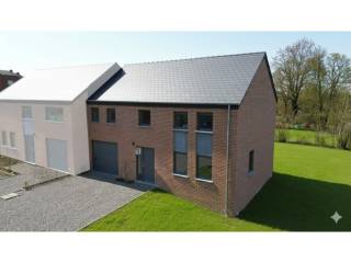 Située dans un environnement résidentiel calme à Aye, cette maison neuve se trouve au cœur d’un quartier à l’atmosphère familiale et paisible, bénéficiant d’une bonne intégration dans le tissu local. L’accès à la N4 s’effectue en +/- 5 minutes, facilitant les déplacements vers Namur ou Luxembourg. Une école fondamentale se trouve à +/- 800 mètres, tandis qu’une crèche est disponible à moins de 5 minutes. Une pharmacie se situe à +/- 2 minutes, et un médecin généraliste est accessible à +/- 1 km. Un supermarché est présent à moins de 5 minutes de route. Ce bien trois façades développe une surface habitable de +/- 172 m² sur un terrain de +/-5,13 ares. La maison dispose d’un garage intégré de +/- 21 m² avec espace buanderie. La terrasse, orientée à l’ouest, permet de profiter d’un bon ensoleillement en fin de journée. Le rez-de-chaussée comprend un hall d’entrée avec WC invités, un séjour lumineux de +/- 29 m², ainsi qu’une cuisine ouverte de +/- 11 m². À l’étage, le hall de nuit dessert une chambre parentale avec dressing de +/- 18 m², une seconde chambre de +/- 15 m², une troisième chambre de +/- 14 m², ainsi qu’une cuisine ouverte de +/- 11 m². À l’étage, le hall de nuit dessert une chambre parentale avec dressing de +/- 18 m², une seconde chambre de +/- 15 m², une troisième chambre de +/- 14 m², ainsi qu’une salle de bain complète de +/- 9 m² équipée d’une baignoire et d’une douche. La maison est équipée d’un chauffage central au gaz et de 6 panneaux photovoltaïques