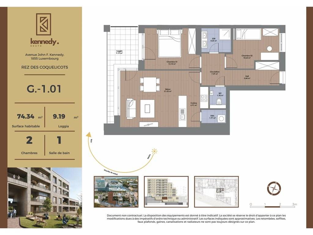 Découvrez cet appartement de 74,34 m² habitables situé à Kirchberg, profitant d'un bel ensoleillement par la loggia qui donne sur les pièces à vivre.