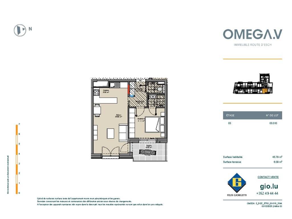 45.79 m² apartment, located on the 3rd floor of the OMEGA V residence in Luxembourg-Gasperich. A balcony of 6.09 m² embellishes this apartment. The displayed price is 3% VAT included. Sale Details - Agency fees at the expense: Not communicated