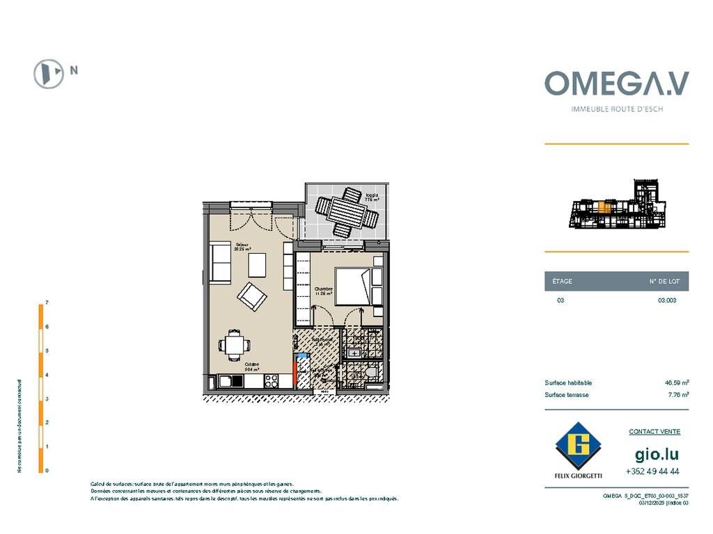 ****** UNDER OFFER ***** 46.59 m² apartment, located on the 3rd floor of the OMEGA V residence in Luxembourg-Gasperich. A balcony of 7.76 m² embellishes this apartment. The displayed price is 3% VAT included. Sale Details - Agency fees at the expense: Not communicated