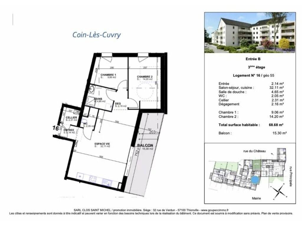 N’hésitez pas et venez découvrir ce nouveau programme neuf en plein cœur du village de Coin-Les-Cuvry. Idéalement situé sur l'Axe Luxembourg - Nancy, ce village bénéficie d'une facilité d'accès aux principaux axes routiers, d'une proximité avec l'aéroport régional et la gare "Lorraine TGV". Le récent développement de zones commerciales comme le Waves à Augny ou encore l'arrivée du géant Amazon à 5 min de la résidence rendent ce projet très attractif.