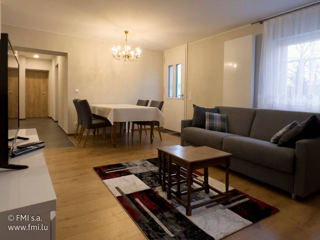 SHORT or MEDIUM TERM RENTAL in Rameldange (commune Niederanven). Minimum 6-month lease. Two-bedroom apartment with garage box and two terraces. Wifi, TV and electricity included in monthly charges.