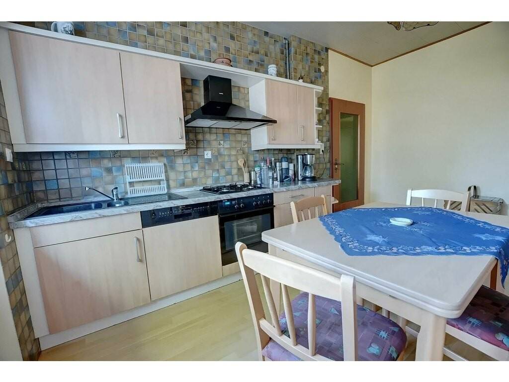 Depuis la cuisine, on accède à une première chambre orientée vers l'arrière du bâtiment. La cuisine et la salle de douche donnent également sur l'arrière.